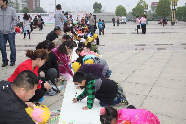 4月27日,枣庄市“创建文明城 青年在行动”志愿者服务活动启动仪式在东湖公园举行,青少年宫组织部分美术、书法专业学员参加了“童筑中国梦 共绘文明城”现场共绘百米长卷活动。