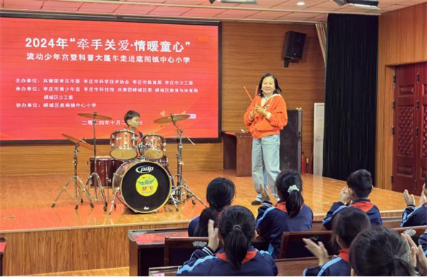 10月29日,“牵手关爱.情暖童心”流动少年宫暨科普大篷车进校园活动在峄城区底阁镇中心小学和阴平镇中心小学举行。
