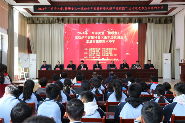 11月5日,秋高气爽,阳光明媚。枣庄市“牵手关爱 情暖童心”流动少年宫暨科普大篷车如同一股充满活力与智慧的暖风,吹进了枣庄市第六中学的校园,为同学们带来了一场别开生面的公益课程盛宴。
