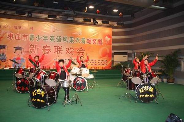 在日前结束的“七彩阳光”2009年全国青少年才艺电视展评活动全国总决赛中,我市青少年宫红杜鹃架子鼓培训中心学员李仕霖、秦子瑞、李博、栗彤、孙铱艺压群雄,一举荣获五个器乐专业金奖,孙彤、范自恒荣获银奖。杜娟荣获优秀园丁奖。