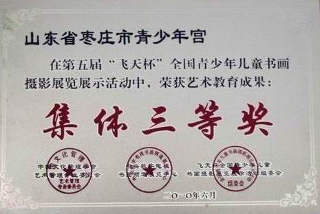 近日,在第五届“飞天杯”全国青少年儿童书画摄影展览展示活动中,我宫深度美术画室共有46名学员获奖。其中:陈霞、戴舒婷、郑亚楠等17名同学荣获金奖,韩天宇、曹纪宇、高晰等13名同学荣获银奖,陈贺、陈天璐等16名同学荣获铜奖。杨文君老师荣获“优秀辅导员金奖”。我宫荣获“艺术教育成果集体三等奖”。