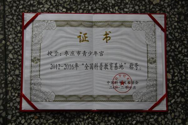 新春伊始,喜报传来,我宫被中国科协正式挂牌确认为2012—2016年度全国科普教育基地。近几年来,我宫高度重视校外科普教育工作,把青少年科普教育纳入宫重点工作范畴,融入到课堂教学改革,大力支持青少年科普教育内容的开发,加大青少年科普教育投资,积极搭建青少年科技活动平台,努力培养青少年科技创新能力,取得了显著成绩,得到了各级科协部门的肯定,先后被评为枣庄市、山东省及全国科普教育基地称号。全国科普教育基地的申报成功,不仅提升了我宫的知名度与美誉度,扩展了科普教育的范畴,同时也推动了枣庄地区校外教育工作的向前发展。