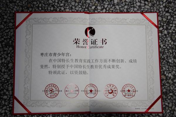 近日,由中华社会文化发展基金会、中国教育电视协会、中国关心下一代工作委员会公益文化中心、中国特长生教育发展联盟、全国特长生文化艺术周组织委员会联合主办的《中国优秀特长生教育培养》工作中,枣庄市青少年宫成绩斐然,被授予中国特长生教育优秀成果奖。