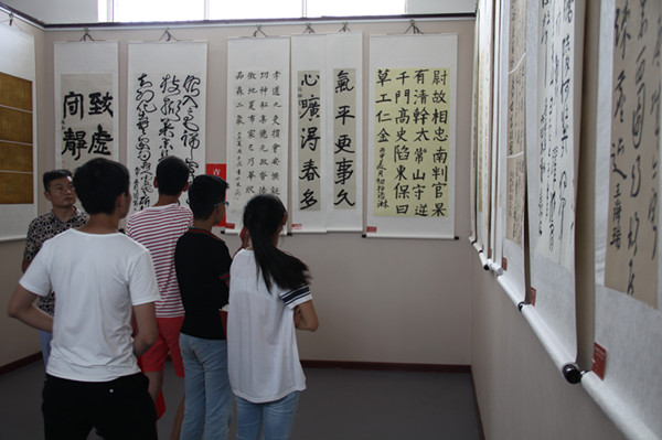 颁奖仪式后,与会人员参观了获奖作品展。展出的300余幅作品以反映中国共产党光辉历程的各类诗词、楹联、文赋等内容,形式多样,篆隶楷行草等书体俱全,表达了真挚的爱党情怀。