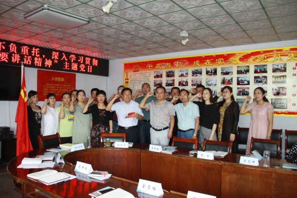 主题党日活动会上,全体党员在党支部书记孙守军的带领下重温了入党誓词。