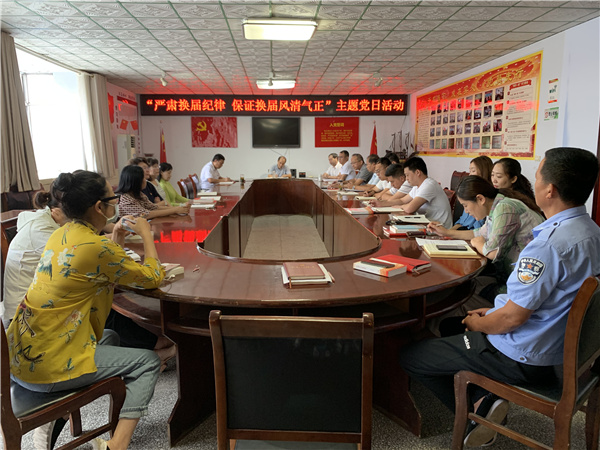 活动传达了中共枣庄市委组织部《关于开展“严肃换届纪律 保证换届风清气正”主题党日活动的通知》,学习了习近平总书记关于全面从严治党和从严管理监督干部的重要论述、中共中央纪委机关、中共中央组织部、国家监察委员会联合印发《关于严肃换届纪律加强换届风气监督的通知》及全省市县乡领导班子换届工作电视电话会议和全市区(市)、镇领导班子换届工作会议精神。