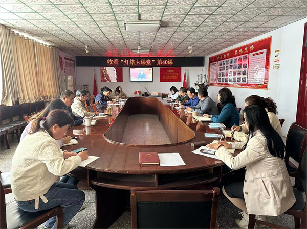 4月17日,市青少年宫党支部组织党员干部群众在党员活动室集中观看“灯塔大课堂”第四十课《坚定不移全面从严治党 深入推进新时代党的建设新的伟大工程》。