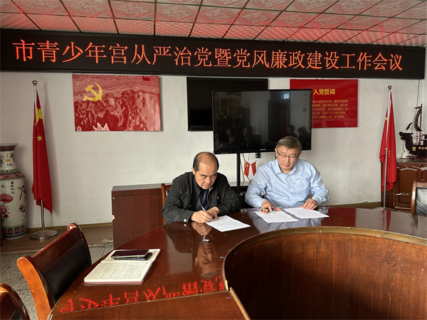 党支部书记赵波代表支部作《2023年度市青少年宫党支部从严治党暨党风廉政建设工作报告》,签订市青少年宫《2024年党风廉政建设责任书》。