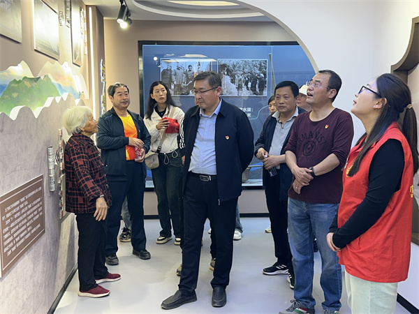 “为有牺牲多壮志,敢教日月换新天”。在“铁姑娘队”队长韩荣云老人的讲解中,同志们实地参观了愚公渠。7年5个月,开挖山洞1500米,投工8万多个,消耗炸药35吨,一个个数字有了鲜活的具象。26名铁姑娘,齐心协力、团结互助、战天斗地、无私奉献,为了榆树腰人喝上清水做出了巨大的贡献,奉献出了青春和热血。同志们被眼前的景象震撼着,在弯腰通过部分渠道时,折服我们的不仅仅是水渠的高度,更是铁姑娘们战天斗地、巾帼无畏、百折不挠、团结拼搏的精神。在“铁姑娘”精神展馆,同志们通过观看馆内的一张张黑白照片和一件件铭刻了岁月痕迹的物件再一次真实地感受到了铁姑娘们披荆斩棘历尽艰辛开凿愚公渠的奇迹。