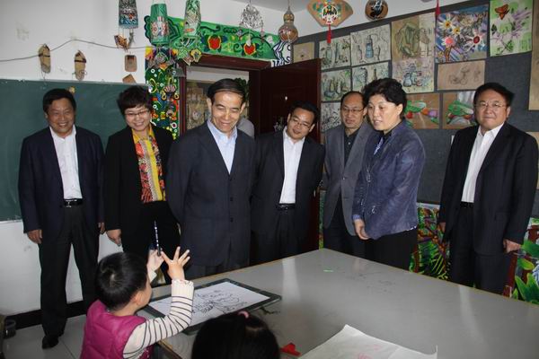 张宝民部长一行四人一到市青少年宫就马上查看了市青少年宫的整体办学环境,然后走进美术教室、书法教室、围棋教室、舞蹈教室、跆拳道训练馆、英语教室,慰问老师、看望孩子们。张部长每到一处,都仔细询问办学情况如何,教师职业道德和专业技能如何提升,学生们的上课时间怎么安排,学习什么内容等,并亲切地和青少年学员们打招呼,看完每一间培训教室,张部长总是最后一个出来,然后轻轻把门关上。