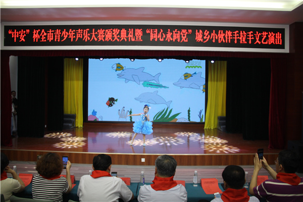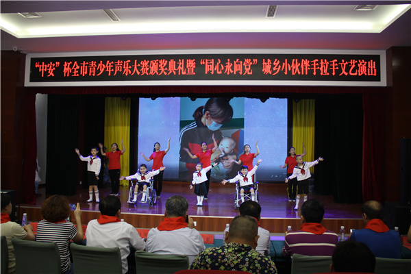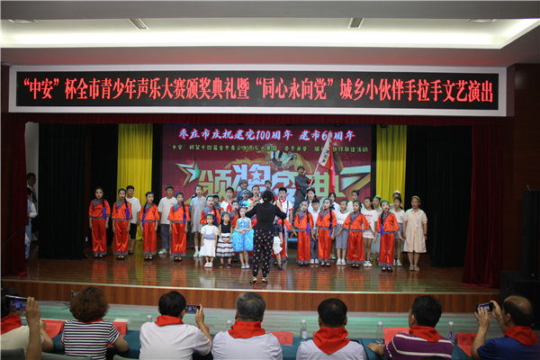 为隆重庆祝建党100周年和枣庄市建市60周年,深化党史教育学习。21年6月26日,"中安"杯第十四届青少年声乐大赛颁奖典礼暨城乡小伙伴手拉手文艺演出在青少年宫梦想剧场隆重举行,广大青少年用特别的方式,表达了对建党百年的祝福。活动由市关工委、团市委、市妇联、市民政局、市少工委联合举办,市青少年宫具体承办。枣庄市关心下一代工作委员会副主任王亚,共青团枣庄市委副书记、市少工委主任赵波,枣庄学院音乐与舞蹈学院院长李永等领导参加了活动。