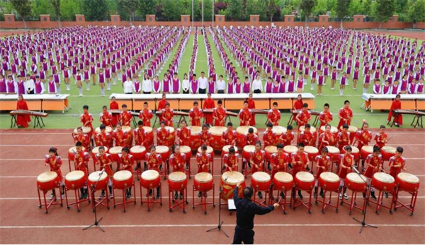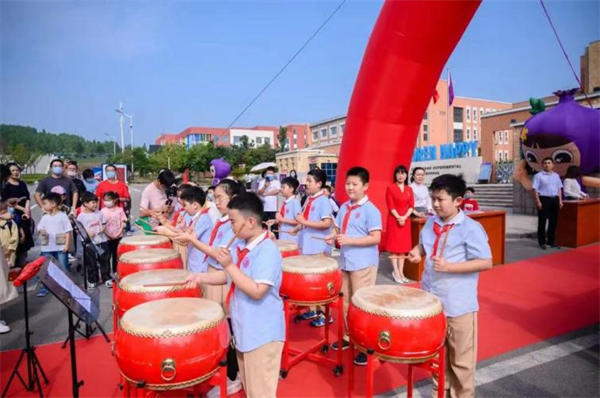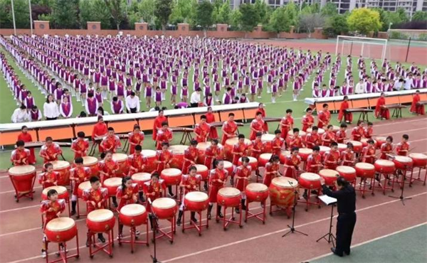 4.2023年5月,枣庄市实验小学第八届校园艺术节开幕式,七彩民族鼓乐团齐奏《强国梦》。