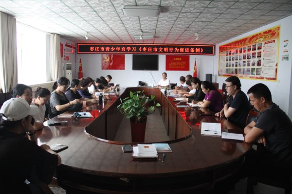 9月2日,市青少年宫召开全体党员及教职工会议,学习传达《枣庄市文明行为促进条例》。