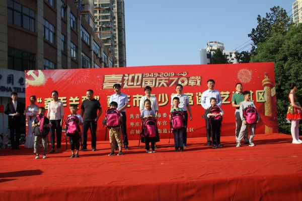 在活动现场,团市委书记周慧同志、薛城区委副书记刘真政同志、团市委副书记张宗银同志、团市委副调研员党组成员秦军同志、临城街道办事处主任李庆彦同志、临城街道党工委副书记翁军同志、薛城区团区委副书记王帅同志为古路街社区青少年赠送书包和文具。