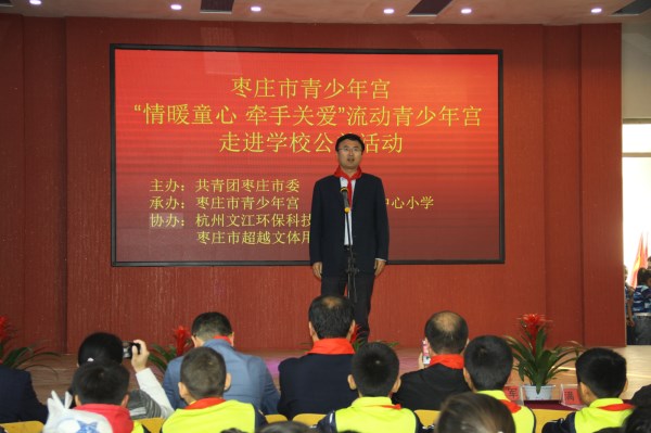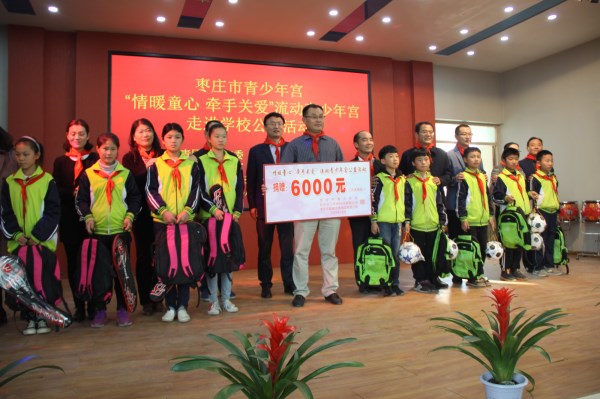 此次活动得到了枣庄市银河少年文艺中心、杭州文江环保科技有限公司、枣庄市超越文体用品有限公司等单位和个人的大力支持,捐赠价值近万元的书包、体育用品,为孩子们奉献了爱心。