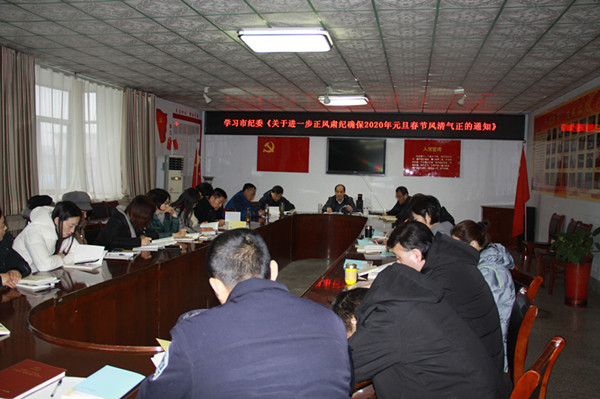 会议首先学习了《习近平新时代中国特色社会主义思想学习纲要》第十三讲建设美丽中国——关于新时代中国特色社会主义生态文明建设:坚持人与自然和谐共生;绿水青山就是金山银山;推动形成绿色发展方式和生活方式;统筹山水林田湖草系统治理;实行最严格的生态环境保护制度。会议学习了中共中央办公厅、国务院办公厅印发《关于做好2020年元旦春节期间有关工作的通知》,中央纪委印发《关于持之以恒正风肃纪确保2020年元旦春节风清气正的通知》以及为贯彻落实上级要求,中共枣庄市纪委《关于进一步正风肃纪确保2020年元旦春节风清气正的通知》。会议还学习了《中国青少年宫协会六届四次理事会决议》的通知。