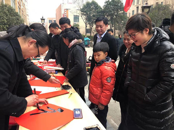 在社区活动中心现场,青年书法家们挥毫泼墨、笔走龙蛇,为社区居民现场书写福字春联,一张张大红的福字摆满现场,充满喜庆和热烈的氛围,当福字送到群众手中时,不时引来围观人群的一致称赞。同时,团市委系统的党员干部带着过节的米面油和春联等节日用品,走进一个个贫困家庭,与他们亲切交谈,鼓励战胜困难信心,树立积极生活勇气,询问工作生活情况,送去新春美好祝福,把党和政府的关怀送到了社区群众家中。在社区活动室,市青少年宫的书法专业教师为社区青少年学生及部分书法爱好者带来了一场专业生动的公益书法课程,大家相互学习交流,进一步密切融洽了党员与群众的关系。