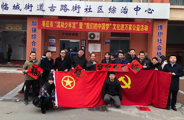 1月11日下午,由团市委机关党委组织发动,枣庄市青少年宫党支部组织的部分党员教师和市青年书法家协会会员走进薛城区临城街道古路街社区,开展 “我们的中国梦”文化进万家暨“流动少年宫”新春送温暖公益活动,为社区居民写春联送祝福,看望慰问社区困难群众和贫困学子。团市委书记周慧、副书记张宗银、程亮、李光玉及团属事业单位的部分党员干部一同参加新春送温暖活动。
