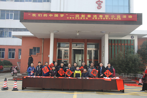 无联不成春,有联春更浓。为弘扬民族优秀传统习俗,推动我国传统文化走进青少年,展示书法艺术,传播书法精神,市青年书法家协会、市青少年宫青少年书画院于1月19日在青少年宫院内联合举办了“我们的中国梦”迎新春送春联公益活动。