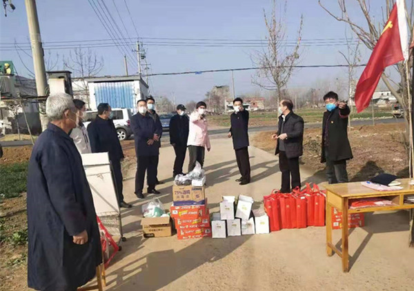 周慧书记一行首先来到后掌大村的疫情防控卡点,看到市委组织部选派的团市委下属市青少年宫派驻后掌大村第一书记李荣国同志正带领村党员干部认真执行防控任务,就走上前去,亲切地说:“感谢大家为了抗击新冠肺炎这场战役,认真负责、尽心尽力工作,大家辛苦了,希望大家再接再厉、继续努力,同时也要增强自我防护,全力打赢这场疫情阻击战”。周慧书记向驻村第一书记详细询问了村里疫情防控的情况,仔细了解村里有多少防控卡点,有多少人在值守,从武汉回来的人员都采取那些隔离措施等防控工作,第一书记都一一作了汇报,听到目前在村党支部和第一书记的带领下,党员群众团结一心、共同抗击疫情,村民都自觉服从大局,人心安定,村民生活保障平稳时,周书记对大家的工作给予肯定。周慧书记说,知道大家在抗疫一线防护物资短缺,今天团市委也给大家准备了一些口罩、酒精、消毒粉和护目镜,市青少年宫还给大家带来了牛奶、火腿肠和方便面,希望对大家防控疫情提供一些支持帮助。周书记就做好疫情防控工作勉励大家说,只要团结起来,众志成城,心手相牵,就没有跨不过去的坎;万众一心,就一定能战胜疫情。在后掌大村,官桥镇党委书记陈伟泰和副书记庞传军也到村里检查疫情防控工作,陈书记对周慧书记一行前来官桥镇指导慰问表示欢迎和感谢,感谢团市委领导对官桥镇后掌大村扶贫工作的大力支持,陈书记对团市委选派的第一书记工作表示满意。周书记感谢官桥镇党委政府对第一书记工作的大力支持,表示今后团市委和官桥镇要互相支持配合,为共同促进乡村经济建设,早日实现全面乡村振兴,实现小康社会做贡献。