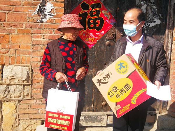 党员同志带着方便面和口罩、肥皂等防控疫情必需品,走进帮包户家庭,进一步宣传党的扶贫政策,详细了解困难家庭有无疾病患者、房屋有无漏水、有无辍学的学生、是否通了自来水、是否签约了家庭医生等家庭生活密切相关的具体情况。同时,面对全国新冠肺炎疫情防控形势,帮包干部还详细了解了疫情防控期间,困难家庭生活有无受到影响等现实问题,并一一作了认真记录。