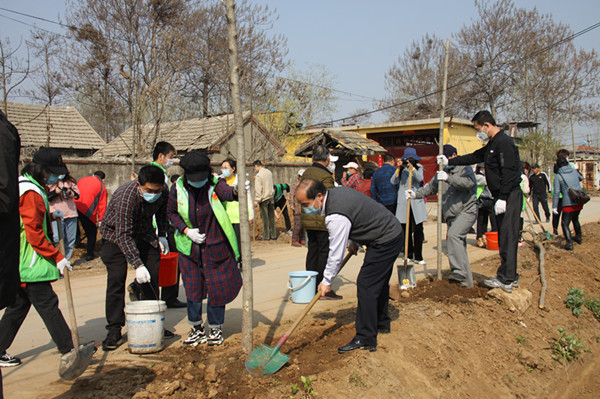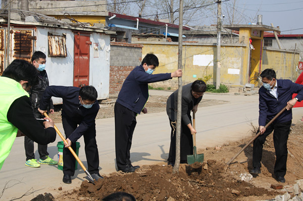 阳春三月,春回大地万物苏;清明将至,植树添绿正当时。为全面加快小康社会进程,全面振兴乡村文明,推进美丽乡村行动, 3月30日,团市委机关党委组织下属党支部到团市委第一书记帮包薄弱村滕州市官桥镇后掌大村开展植树活动。枣庄团市委书记周慧,副书记赵波、李光玉,副调研员秦军及滕州市委常委孔祥东,滕州团市委、官桥镇党委等领导同志参加。