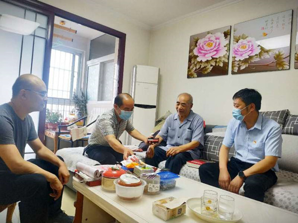 随后,团市委副书记张宗银和市青少年宫党支部书记种燕同志在社区同志带领下,一起走进老党员李振杰家中,送去党的节日祝福和党员学习节日礼包,关心问候老党员的生活身体状况,安排社区党组织负责同志要及时了解和照顾好社区老党员的政治诉求和学习生活,老党员李振杰对团市委、市青少年宫党组织的关心慰问表示感谢。张宗银和种燕及社区负责同志一起到居民小区休闲场地实地调研,与居民个别交谈,了解社情民意,研究探讨共建大众体育休闲活动项目情况,为今后做好社区共建工作打好基础。