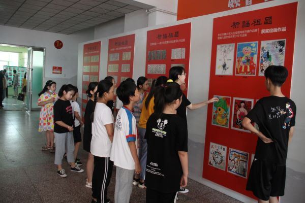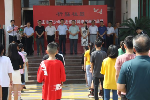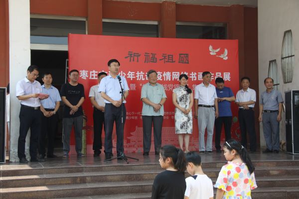 盛夏时节,硕果飘香。为大力弘扬社会主义核心价值观,迎接中国人民解放军建军93周年,弘扬伟大的抗疫精神,向社会传播抗疫活动正能量,更好地鼓舞、引导广大党员干部和青少年树立爱祖国、爱人民、爱劳动、爱科学、爱社会主义的崇高革命理想信念,为实现中华民族伟大复兴的中国梦不懈奋斗凝聚力量,市青少年宫于8月1日上午在青少年宫一号楼举行枣庄市青少年抗击疫情网络作品展颁奖仪式暨“抗疫一线党旗扬”集邮作品展览活动。市关心下一代工作委员会副主任王亚、共青团枣庄市委四级调研员秦军、枣庄市卫生健康委员会四级调研员王美娟、原枣庄市卫生局纪委书记邱代存等领导同志和市青年书协、市青年美协有关负责人出席了活动;部分获奖学生,家长和市青少年宫党员干部职工也参加展览活动。