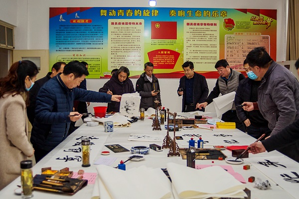 枣庄市青少年宫情商阅读、音乐、美术、武术等四个专业课程的专业教师走进课堂,开展“流动少年宫”专业公益课程。枣庄市大漠书画院、市新阶联书画院和滕州市新的社会阶层人士联谊会的书画家们现场挥毫泼墨,进行书画创作,并将作品捐赠给学校。