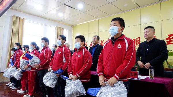 送课活动前,隆重举行了枣庄市新的社会阶层联谊会“荟新兴枣 文化润教”活动启动仪式。市委统战部副部长、市侨办主任屈彦锋发表了热情洋溢的讲话,充分肯定了全市新的社会阶层人士和青少年宫充分发挥资源丰富、人才荟萃的优势,积极主动参与乡村振兴战略,组织开展的一系列送文化、送艺术、送教育,进社区、进农村、进校园等公益活动,让广大青少年感受中国传统文化,增强素质教育,以实际行动服务乡村振兴,积极传播社会主义核心价值观,鼓舞广大人民群众决胜全面建成小康社会的决心和信心。启动仪式上,枣庄市、滕州市新的社会阶层人士联谊会向62名建档立卡贫困学生赠送了足球、篮球等文体用品。