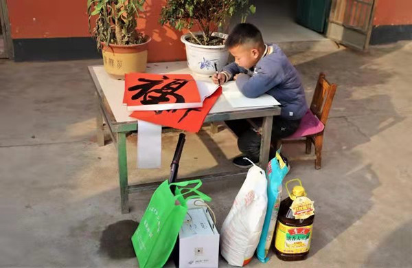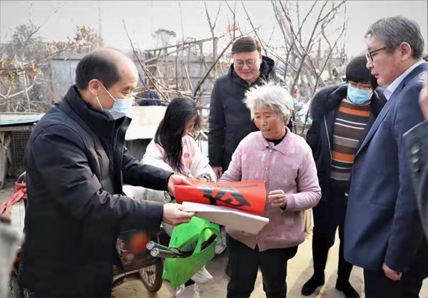 2月3日下午,在团市委副书记赵波带领下,市青少年宫、市青少年活动中心、市青年书协和市中团区委的同志一起来到市中区齐村镇小刘庄村、前良村、郭村,带着为走访学生准备的学生课外教育必读经典系列丛书、未成年人素质教育读本和羽毛球拍等文体学习用品,先后走进部分建档立卡的贫困学生和因疫情原因父母不能回家过年的留守、困境少年儿童、“希望小屋”小主人的代表家庭送去春节慰问和祝福。市青少年活动中心专门购置了米、面、油和牛奶、跳绳,市青年书协的书法家们精心撰写了福字和春联,给小朋友们送去节日祝福。