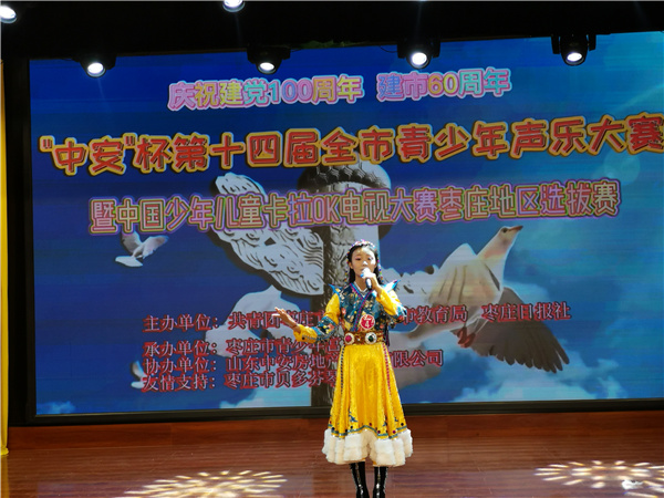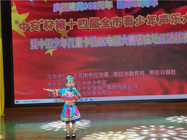 6月12日,枣庄市青少年宫梦想剧场传出悠扬的歌声和阵阵掌声。由团市委、市教育局、枣庄日报社联合主办,市青少年宫承办,山东中安房地产集团有限公司协办的“中安”杯第十四届枣庄市青少年声乐大赛决赛在这里举行。