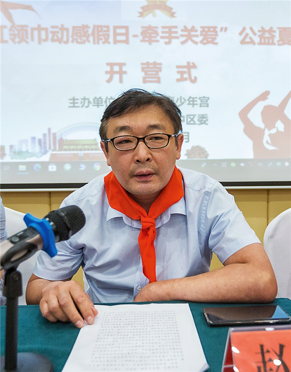 团市委副书记赵波参加开营仪式并讲话:希望参加夏令营的营员们在这五天的时间里要认真学习有关知识和自护本领,增强法制观念和防范意识,涵养意志品质和高尚品格,志存高远,做一名合格的新时代少先队员,为将来能够成为祖国的建设者和可靠接班人打下良好的基础。下一步,各级团、队组织,要切实增强责任意识,因地制宜,千方百计、大力组织开展丰富多彩,不同规模,不同内容和形式的公益性、普惠性的夏令营活动。同时,要不断增强夏令营活动的思想性、组织性、自主性、实践性、趣味性,更好的服务少年儿童健康成长,为广大少年儿童快乐生活、全面发展、健康成长提供直接服务。宫主任种燕宣布夏令营开营,市中区团委书记宋晓娜向营员授营旗。