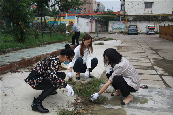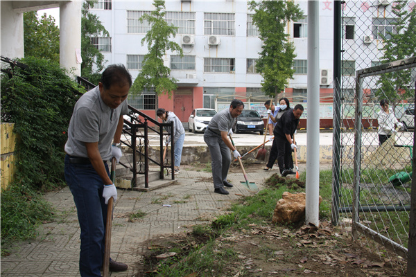 简短的分工后,干部职工迅速投入到活动当中,重点清扫了琴房、草坪、球场的杂草杂物、垃圾。大家团结协作,密切配合,你铲我扫,有的清垃圾,有的拔杂草,积极主动有条不紊地开展了清扫工作。经过一上午的劳动,成果显著,基本达到了无卫生死角、无污物,所见视线内干净整洁。