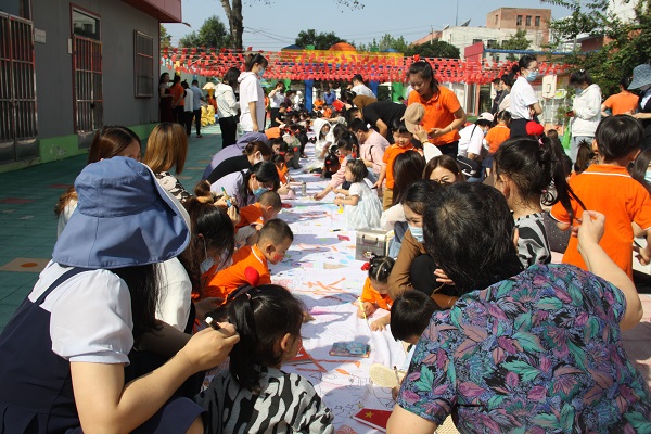 随后,围绕国庆,开展了”我爱祖国“小手绘长卷活动。孩子们用一双双小手,和爸爸妈妈一起绘画,为伟大的祖国共绘蓝图,描绘出色彩斑斓的世界,用一幅幅色彩鲜明的画作来表达对党、对祖国、对家乡的热爱,对幸福生活的赞美。