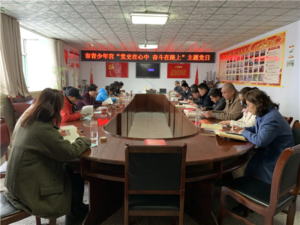 11月15日,市青少年宫召开全体在职党员和教职工会议,开展“党史在心中  奋斗在路上”主题党日活动。
