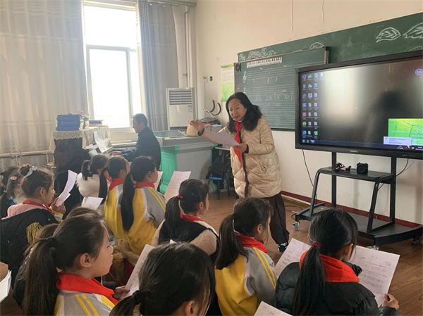 “泉眼无声惜细流,树荫照水爱晴柔。”伴着顾连军副主任悠扬的钢琴琴声,市青少年宫火炬艺术团副团长杜娟正在指导马兰屯中心小学合唱社团的同学们演唱《小池》。杜娟老师不仅教他们如何有感情地把歌曲唱好,还细致地指导他们怎样吸气,做到科学发声。原本天籁般的童声,在杜老师的指导下愈发清脆优美。