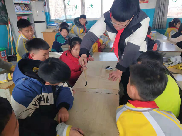琵琶老师冯亚楠和书法教师樊慧业的课程上得有声有色,受到老师和全体同学的欢迎,课后,他们都问:“老师,您下次什么时候再来?”