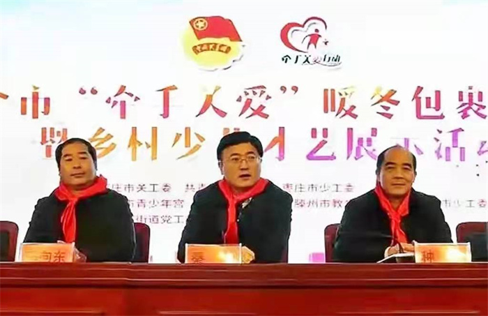 胡垒同志首先代表滕州团市委向出席本次活动的领导、老师表示热烈的欢迎,向长期以来关心、支持滕州市青少年成长的各级领导和社会各界表示衷心的感谢。同时,对近年来我市开展留守、孤困儿童帮扶活动情况进行介绍,并指出,此次活动的举办,既是对我市少年儿童帮扶工作的肯定,也是对我们今后工作的鞭策。相信在社会各界的关心、支持下,我市青少年儿童一定会快乐生活、茁壮成长!