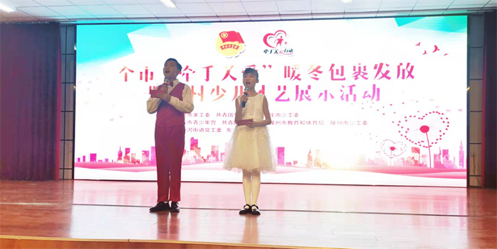 1月6日上午,由市青少年宫与滕州团市委联合承办的全市“牵手关爱”暖冬包裹发放暨乡村少儿才艺展示活动第四站在滕州市东沙河街道中心小学举行。团市委四级调研员秦军,市青少年宫主任种燕、副主任郭向东,滕州团市委副书记胡垒以及滕州市东沙河街道、滕州市教体局等相关部门的领导和东沙河街道牵手关爱结对帮扶的农村留守、困境少年儿童,有艺术特长的乡村少年儿童、东沙河街道中心小学师生代表一起参加活动。