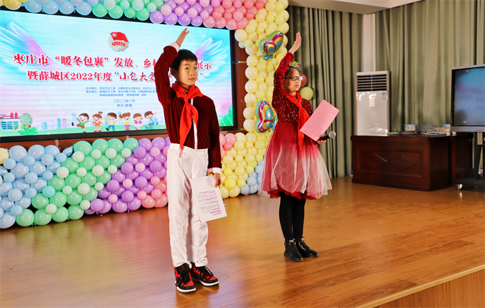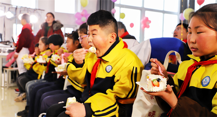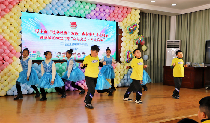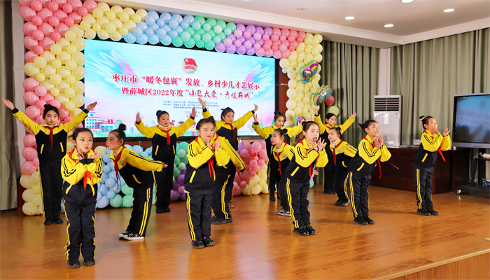 随后,与会领导向薛城区留守、困境少年儿童发放暖冬包裹,并与同学们一起观看了“争做新时代好队员”乡村少儿才艺展示活动,来自周营镇中心小学的同学们表演了精彩的舞蹈、合唱、手指操、乐器演奏等文艺节目。活动当天适逢腊八节,薛城区团委及爱心企业、义工联盟的爱心人士为孩子们送去了装有书包文具春联的爱心礼包,送去了大米、面粉、食用油等物品。还专门熬制了腊八粥,包爱心水饺,切生日蛋糕,让孩子度过一个开心快乐的节日,更让同学们在寒冷的冬天感觉到暖意融融。