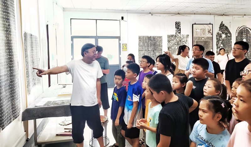 市青少年书画院的30余名小书法家们在院长马德田老师的带领下来到山亭区杏山博物馆开启一段与古人对话的旅程,通过研学的方式来体验和制作拓片,为大家解开这古老技艺的神秘面纱并一起体验拓片的独特魅力。