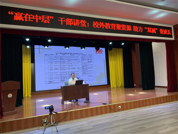 为加强干部思想作风建设,提升干部专业化能力,按照市委组织部《关于开展“赢在中层”干部讲堂的通知》要求,9月27日,市青少年宫副主任顾连军在梦想剧场讲了一堂《校外教育聚资源 助力“双减”促成长》课程。