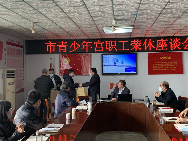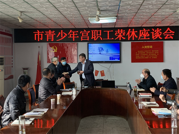 团市委副书记、市青少年宫党支部书记赵波颁发荣休证书,种燕、孙守军、顾连军等宫领导赠送荣休纪念品。种燕主任致辞,充分肯定了各位退休干部职工在职期间用担当和实干为青少年宫事业挥洒的无数汗水,代表全宫教职员工向光荣退休的同志致以美好的祝福,对老同志长期以来在青少年宫工作期间敬业爱岗和无私的奉献表示诚挚的感谢!并表示,退休是一段工作的结束,也是另一段生活的开始,芳华不老、岁月常新,希望各位荣休干部职工退休不退志、离岗不离心,在合理安排好自己退休生活的同时,能够常回来看看,一如既往地关心、关注和支持青少年宫的建设发展,继续发挥老党员余热和先锋模范作用,积极参加党组织生活和日常政治学习实践活动。