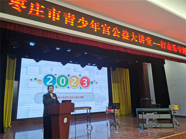 2月25日上午,市青少年宫在梦想剧场举办青少年公益大讲堂--打击乐专题讲座。来自枣庄五区一市的打击乐爱好者和学生家长参加活动。市青少年宫主任种燕、副主任顾连军出席活动。