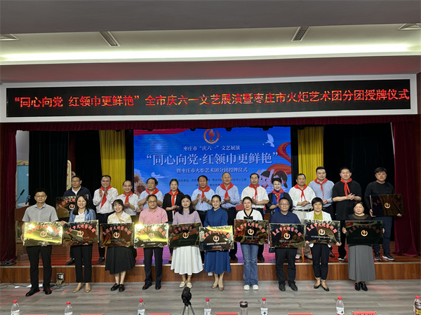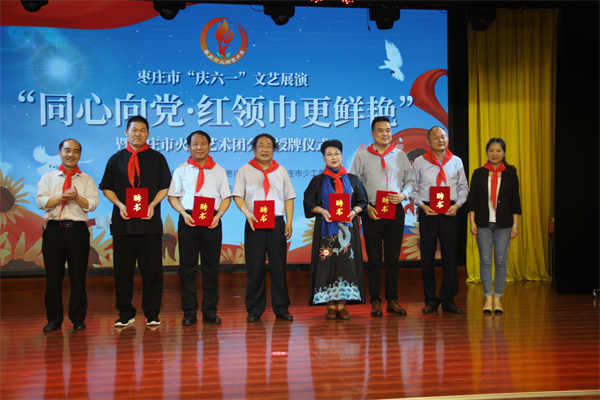 为全面加强新时代青少年德智体美劳教育工作,立足为党育人的根本任务,强化对少年儿童的政治启蒙和价值观塑造。5月27日,由团市委、市教育局、市少工委主办,市青少年宫具体承办的“同心向党 红领巾更鲜艳”枣庄市“庆六一”文艺展演暨枣庄市火炬艺术团分团授牌仪式活动,在青少年宫梦想剧场隆重举行。