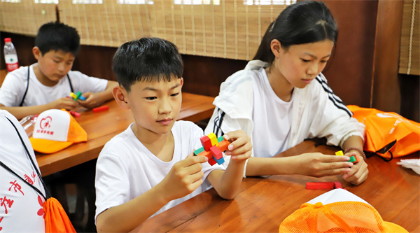营员们游览台儿庄古城。同学们在古运河畔,听研学导师讲运河文化,探寻具有千年历史的运河文化遗产体系。走在被称为“中国民居建筑博物馆”的古城里,亲身感受一下“顺天然,亲人和”八大建筑风格,聆听“天下第一庄”的故事和深厚运河文化。同学们参观“台儿庄大战遗址公园”,在苍夷满目的弹孔墙前,聆听那些感人的战争故事,感悟现实生活的来之不易。参观主题博物馆,体验非遗传承,了解古代建筑、工匠、历史名人的故事,学习“鲁班锁”的原理,感悟先人的智慧,体味到古城千百年来散发的人性的智慧与光辉,深刻感受到了中华文化的博大精深。