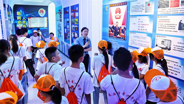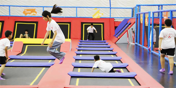 上午营员们走进了枣庄市市中区人民检察院,零距离地参观学习法律知识,聆听预防未成年人犯罪法制讲座,掌握相关法律常识,增强大家的法律意识;切身感悟法治的力量。营员们还参观了中兴文化博物馆,深入了解枣庄矿区革命斗争史和具有百年辉煌的中兴文化和中兴精神。下午营员们来到市青少年宫观看红色电影、学唱红色歌曲、体验趣味篮球和乒乓球运动的快乐。在东湖冰雪中心的蹦床乐园,营员们体验了精彩纷呈的蹦床游戏,惊险刺激的旱地滑道、有趣的淘气堡、水上滚筒、网红“粘粘墙”、室内篮球等。让营员们明媚而欢乐的笑脸就像是展开了一幅幅温暖动人的璀璨卷轴,笑声、尖叫声此起彼伏。