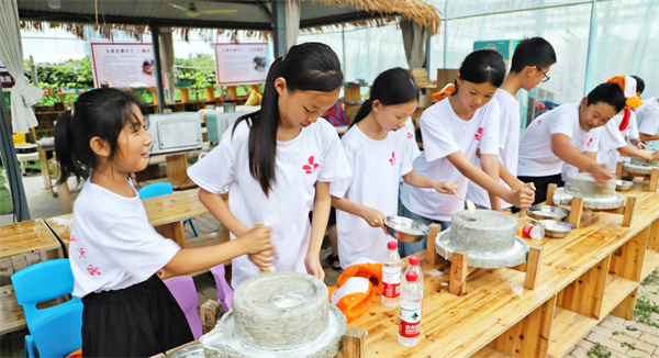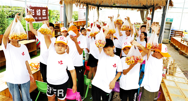 营员们来到市中区孟庄镇鲜农农场体验农耕文化、采摘游戏和军事游戏等。在军事游戏区,营员们手持冲锋枪、眼戴护目镜,参加真人CS对抗战,激烈的枪声、惊叫声响成一片。在农耕体验区,在老师的讲解下,学习传统豆腐的制作工艺,营员们自己动手,磨浆、过滤、加温、点卤、挤压,不一会,香喷喷的热豆腐就制作出来了,品尝着自己亲手做的豆腐非常开心,同时,也感受到古代劳动人民的智慧,懂得了食物的珍贵和来之不易。在采摘园里,限时采摘小西红柿比赛开始,营员们争先恐后,充分展现自己的采摘技艺,尽享采摘的乐趣。比赛结束,当得知谁摘的归谁时,营员们高高举起胜利果实笑逐颜开。