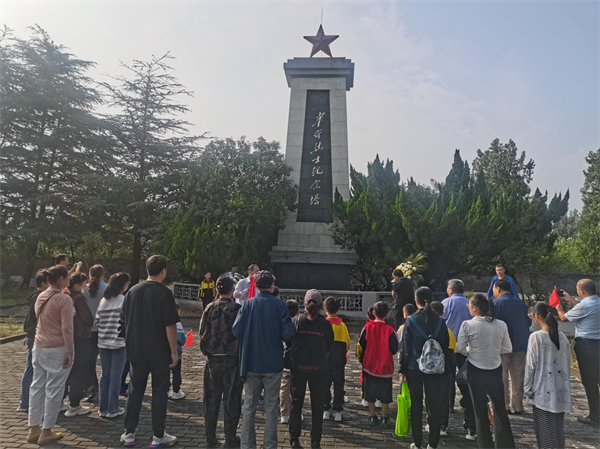 首先,少先队员们来到位于市中区税郭镇牛角村的鲁南战役烈士陵园,瞻仰烈士纪念碑并敬献鲜花花篮。活动仪式上,市中区关工委常务副主任王广德和枣庄市红色收藏委员会杨义平会长分别为少先队员们讲述了参加鲁南战役革命事迹,全体人员向烈士纪念碑致敬。